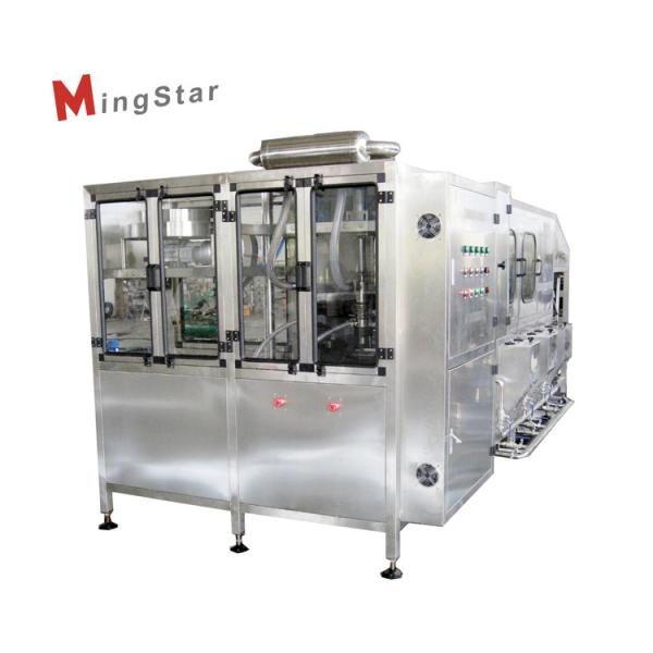 600BPH Automatic filling line is the advanced product of Mingstar company.The advanced filling technology and further improvement have been combined together for the machine.The equipment is composed ofautomatic bottle washing machine, automatic bottle take in machine, filling machine, cap covering and cap pressing machine, Thermal shrinking package machine and finished product.The equipment adopts stainless steel 304. The characteristics of the equipment are novel-designed, easy operated and precise posited. It becomes the most ideal equipment for filling 5 Gallon drinking water.